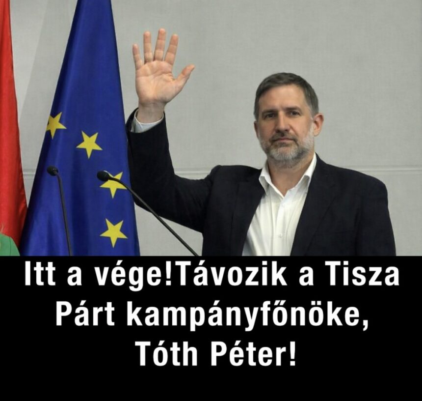 Tóth Péter távozik a politikából, és a jövőben a családjára, valamint a civil életére szeretne koncentrálni. A hírt Magyar Péter jelentette be, aki egyúttal megköszönte a kampányfőnök munkáját, és elárulta: próbálta maradásra bírni, de végül megértette a döntését.