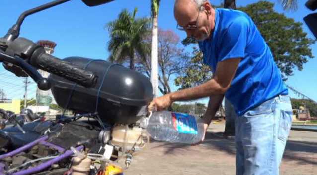 Később az üzemanyag tartályt újra teletölti, itt már szennyezett vízzel a Tiete folyóból. A motornak ez meg sem kottyan, és egy liter vízzel vígan elrobog 500 kilométeren át.