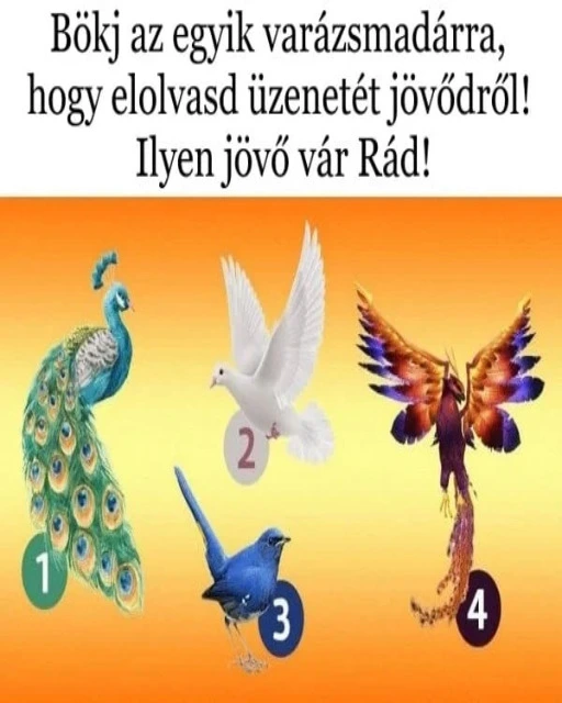 A tudatalattid igen bölcs, ezért könnyedén kiválasztja, melyik madárhoz tartozó üzenet vonatkozik most a közeljövődre! Nincs más dolgod, mint a madár kiválasztása után elolvasni az üzenetet!