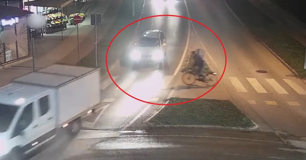 Haladása során a járművezető a körforgalom előtt - a kamerafelvétel alapján – észlelte, hogy a számára nem biztosított elsőbbséget egy kerékpáros fiatalember, aki a Híd utca felől hajtott a kijelölt gyalogátkelőhelyre. A sofőr a járművét lefékezte, azonban ennek ellenére a biciklisnek érintőlegesen nekiütközött és őt fellökte, aki ezt követően visszaült a kerékpárjára és tovább haladt. A balesetet észlelve az ismeretlen vezető megállt, de segítségnyújtás nélkül a helyszínt elhagyta.